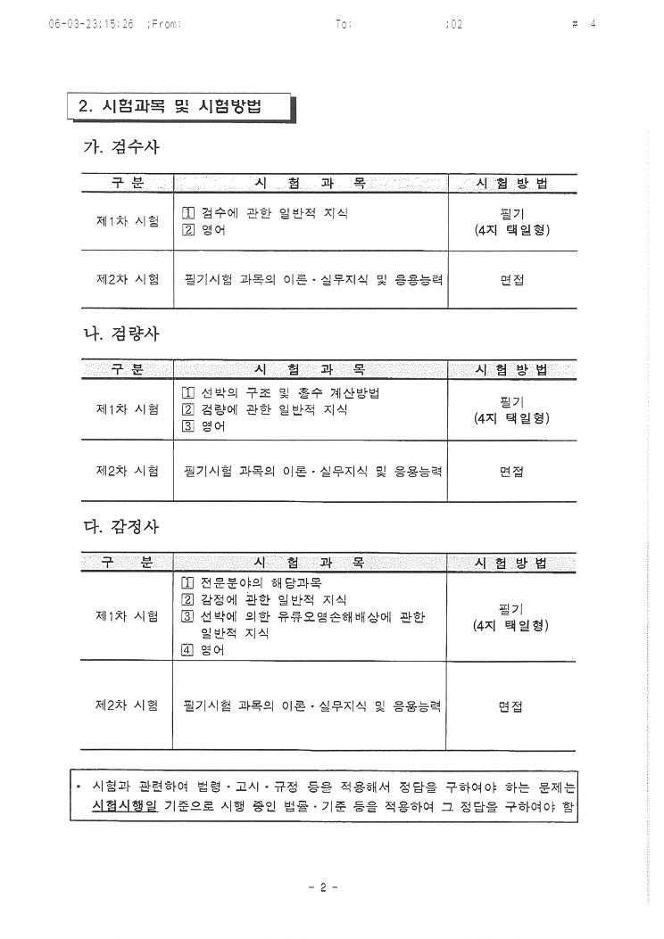 검수사 자격시험 시행공고