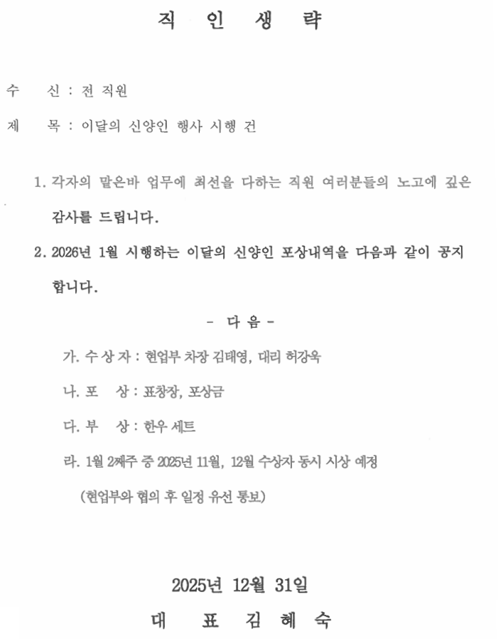11월, 12월 이 달의 신양인 포상 내역 공지